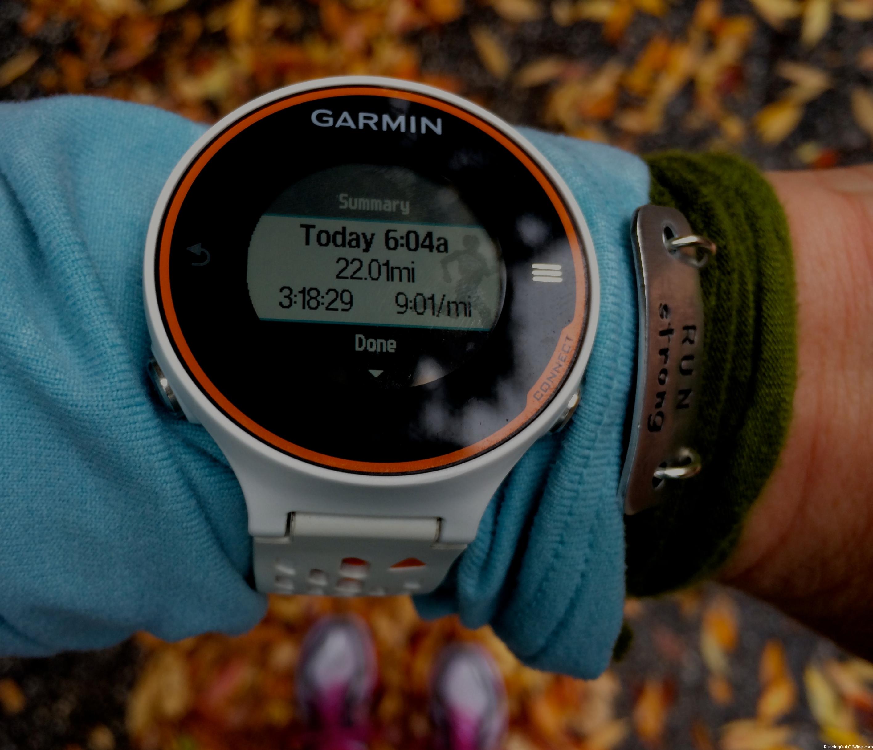 Saturday: 22 miles with last 3 at goal marathon pace. (average pace 9:01) So glad this run is over!!