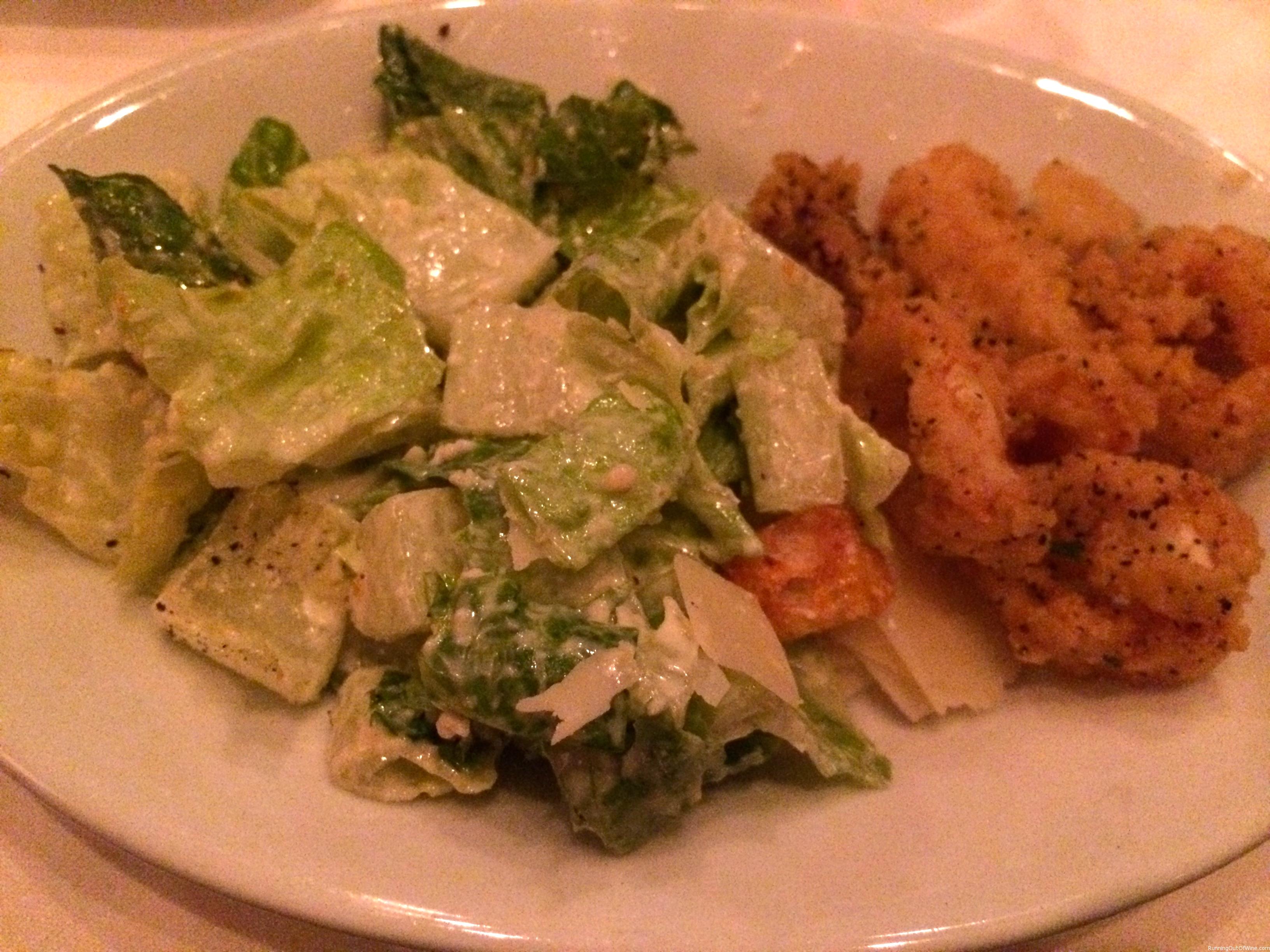 We started with a caesar salad and calamari. Both were really good, but portions were huge! (This is just what I put on my bread plate)